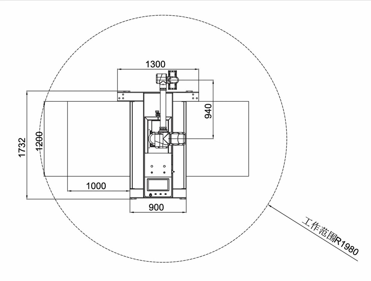 อุปกรณ์ = ชุดหุ่นยนต์ + ตัวดูด(Suction) 2 ชุด + ชุดลำเรียง (Conveyor) W600xL1000xH550-630 mm.